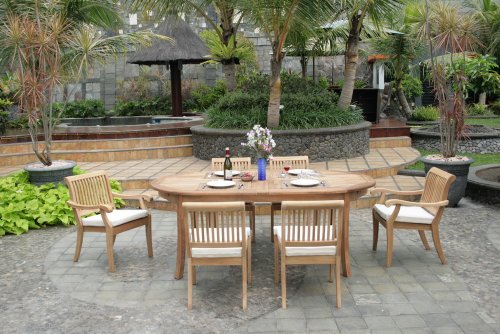 New 7 Pc Luxurious Grade-A Teak Dining Set - 94" Oval Table, 4 Armless and 2 Arm Stacking Chairs [Model:AB4] Review
